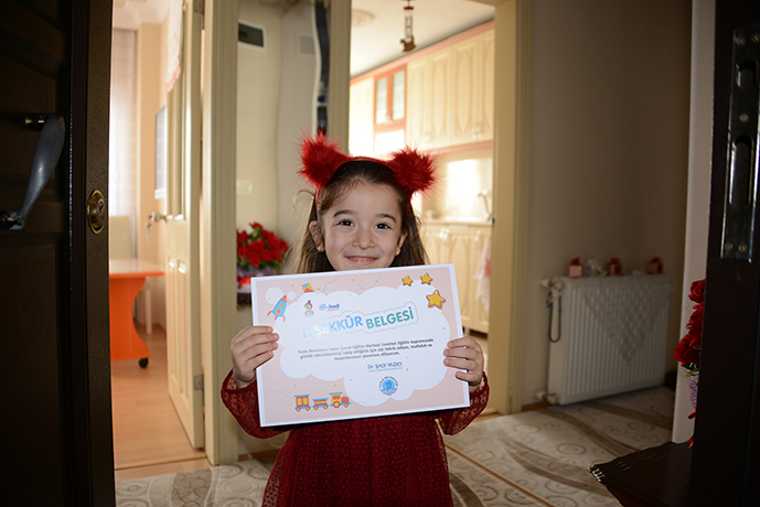 Evlerinden E-Hadi Etkinliklerine Katılan Çocuklara Teşekkür Belgesi